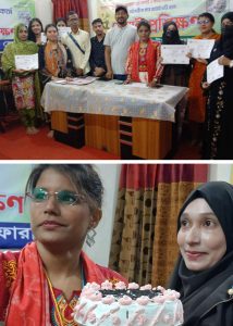 কেক কাটার মাধ্যমে অনুষ্ঠানটি প্রাণবন্ত করে তোলে প্রশিক্ষক ও পরিচালক হাসিনা আক্তার।